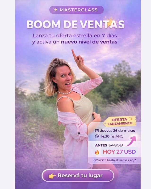 Una masterclass intensiva donde vas a aprender a diseñar una oferta irresistible, lanzar con estrategia y crear contenido que convierta seguidores en clientes.
